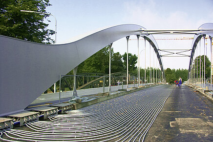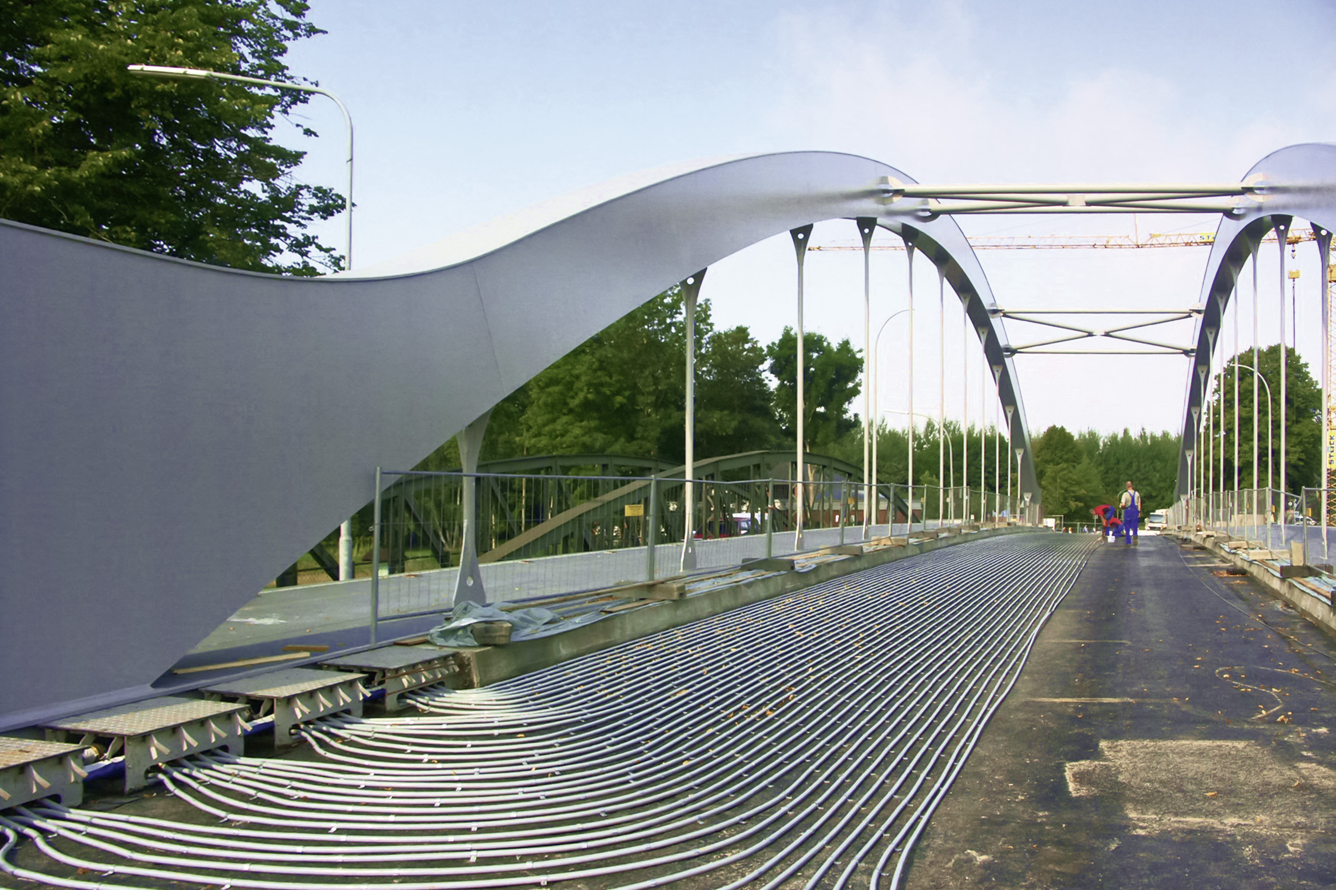 Mais cette situation appartient désormais au passé. En novembre 2011, après plus de deux ans de planification et de travaux, un nouveau pont a été inauguré. Il s’agit du premier pont d’Allemagne équipé d’un chauffage au sol géothermique. Ce système innovant, développé avec une pompe à chaleur Weishaupt, permet non seulement de chauffer la chaussée en hiver, mais aussi de la refroidir en été pour éviter la formation d’ornières.