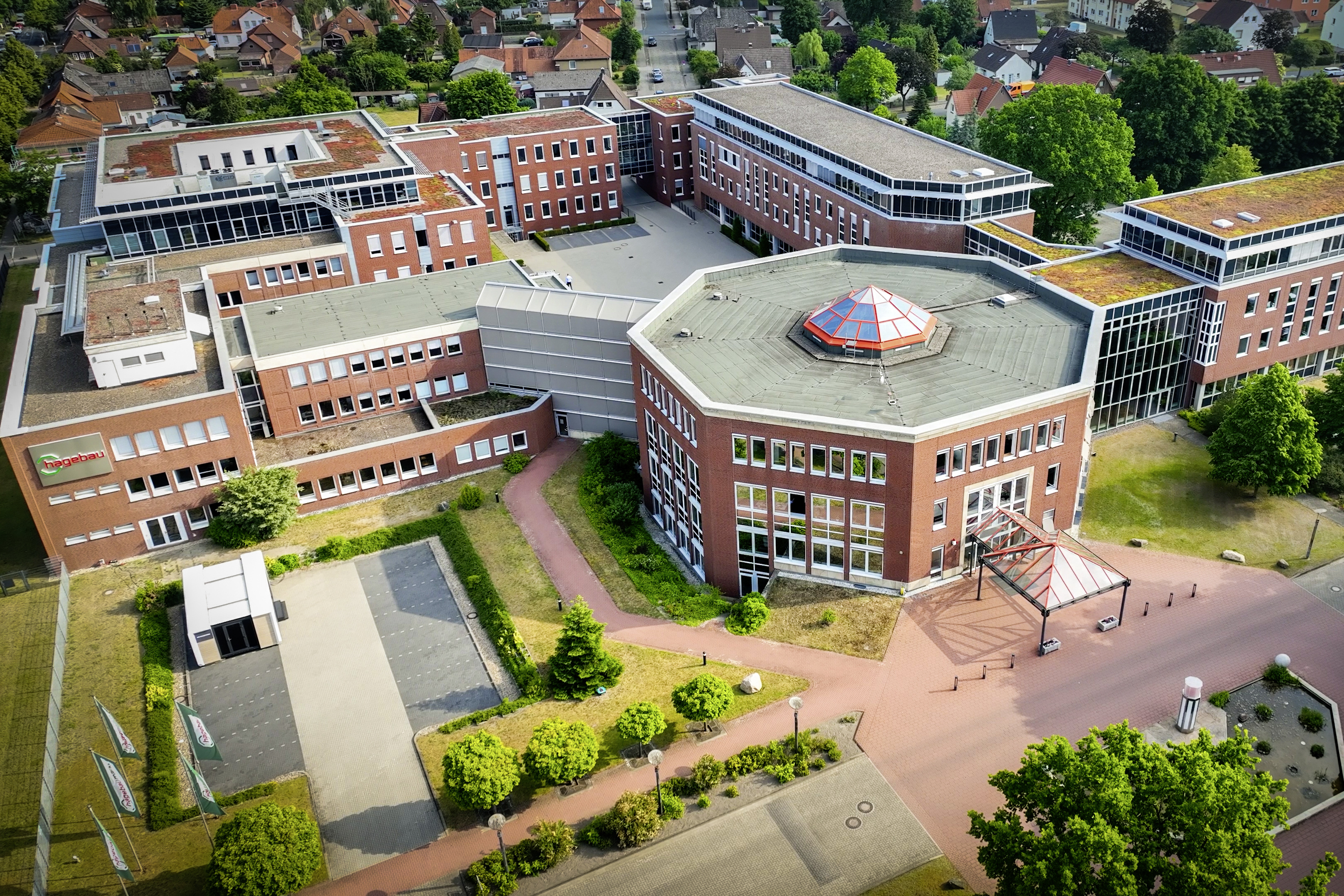 Cette croissance s’accompagne d’une augmentation des besoins en surfaces de bureaux. Le siège social de Hagebau à Soltau a ainsi été agrandi à plusieurs reprises, comptant désormais cinq phases de construction. La chaufferie, toujours située au dernier étage du bâtiment d’origine, a vu sa puissance croître en parallèle. Aujourd’hui, environ 850 collaborateurs travaillent sur une surface totale de 16.000 m².