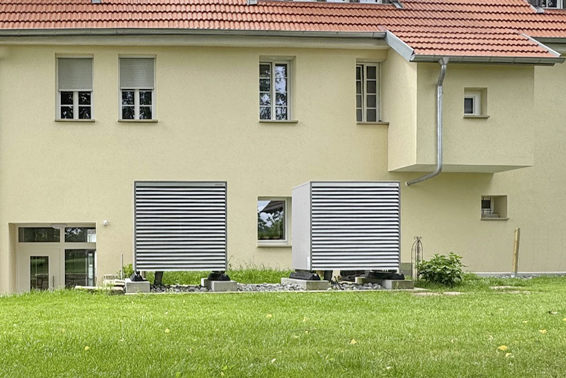 En seulement trois ans, les fondations ont été consolidées, l’humidité maîtrisée, et les murs extérieurs ainsi que la charpente restaurés. Pour le chauffage et la production d’eau chaude, la famille a opté pour une solution moderne et durable : une cascade de deux pompes à chaleur air/eau Biblock® de 20 kW chacune, associée à un accumulateur d’énergie de 1 500 litres et à une station de préparation ECS.